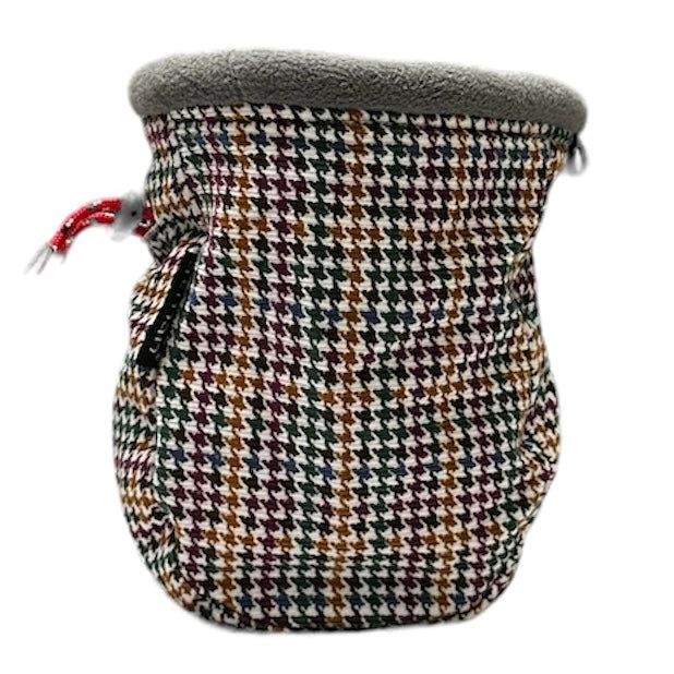 Magnesiera para escalada de textura particular, reconfortante al tacto, cierre que ayudará a conservar la magnesia e incluye cinturón ajustable a la cadera. Encadena tus proyectos con estilo cool.
