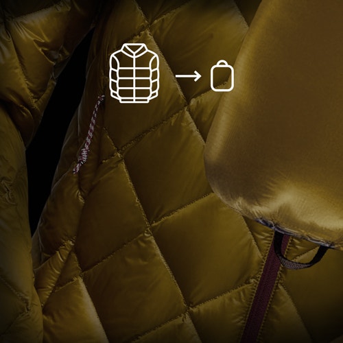 La chaqueta se compacta fácilmente en una bolsa de compresión y ocupa un espacio mínimo en la mochila.