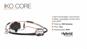 ¡Un concentrado de tecnologías! La linterna frontal recargable IKO® CORE ofrece una potencia de 500 lúmenes por solo 79 g. Provista de la cinta AIRFIT®, un bloque delantero ultrafino y una fuente de energía desplazada a la parte posterior, la linterna está equilibrada y es confortable hasta el punto de olvidarse de ella. Polivalente, se puede llevar alrededor del cuello o transformarse en lámpara gracias a la bolsa para guardar y transportar. Se guarda plana para más compacidad para llevarla en cualquier actividad outdoor. Se sirve con la batería CORE, la IKO® CORE también es compatible con tres pilas AAA/LR03 (no incluidas) gracias a la construcción HYBRID CONCEPT.